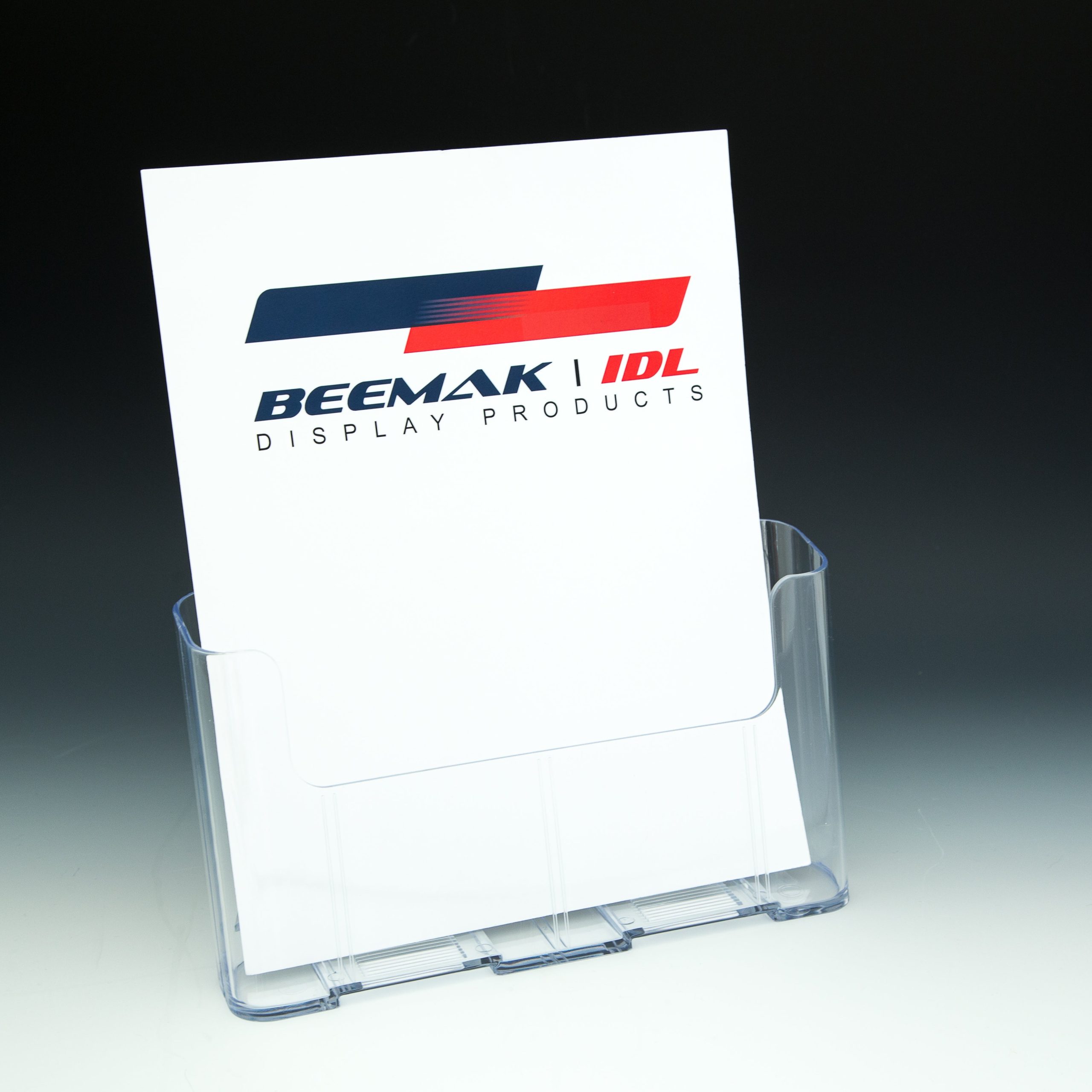 8.5″ Literature Holder with Removable Divider is a versatile, multi-use display solution designed to accommodate 8.5” x 11” letter-size literature or two sets of 4″ wide trifold brochures. The high-clarity construction ensures premium visibility, while the durable single-pocket body includes an optional divider insert that converts the display into two separate pockets.