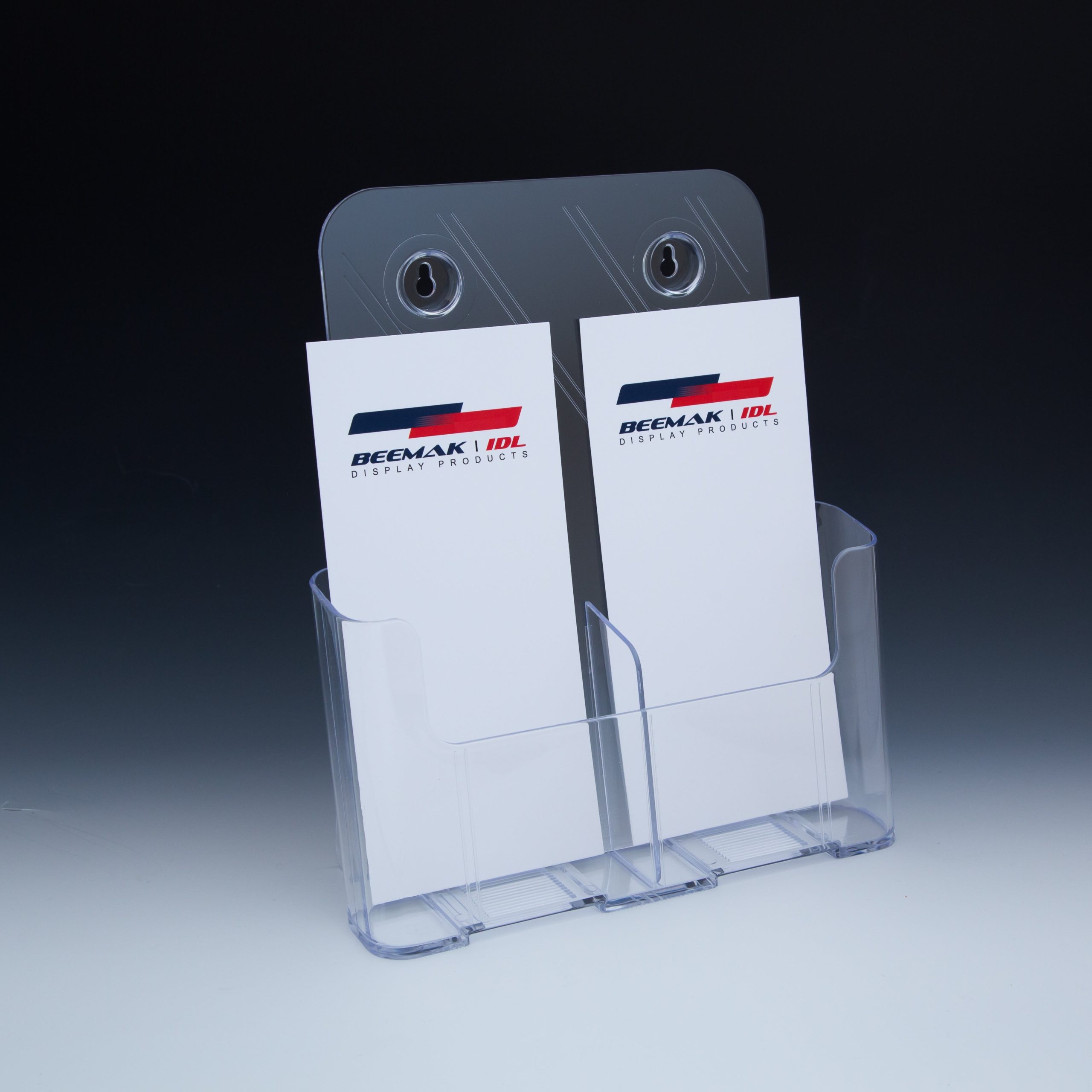- Fits standard 8.5″ wide literature or two 4″ wide brochures