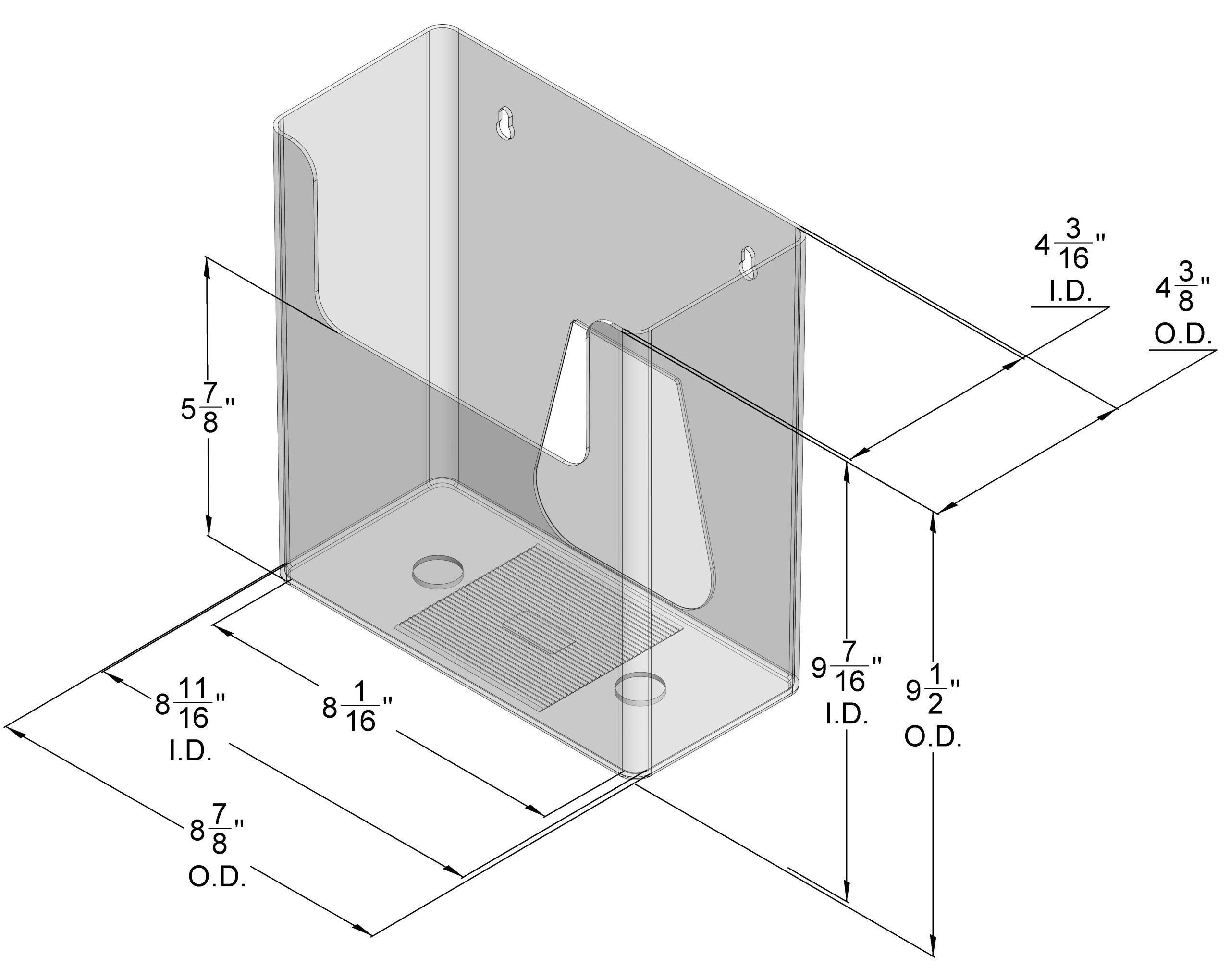 • Overall Dimensions: 8.875” W x 4.375” D x 9.5” H