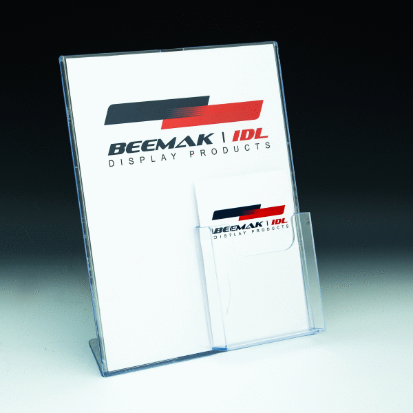 countertop display designed for secure sign presentation and convenient brochure distribution.