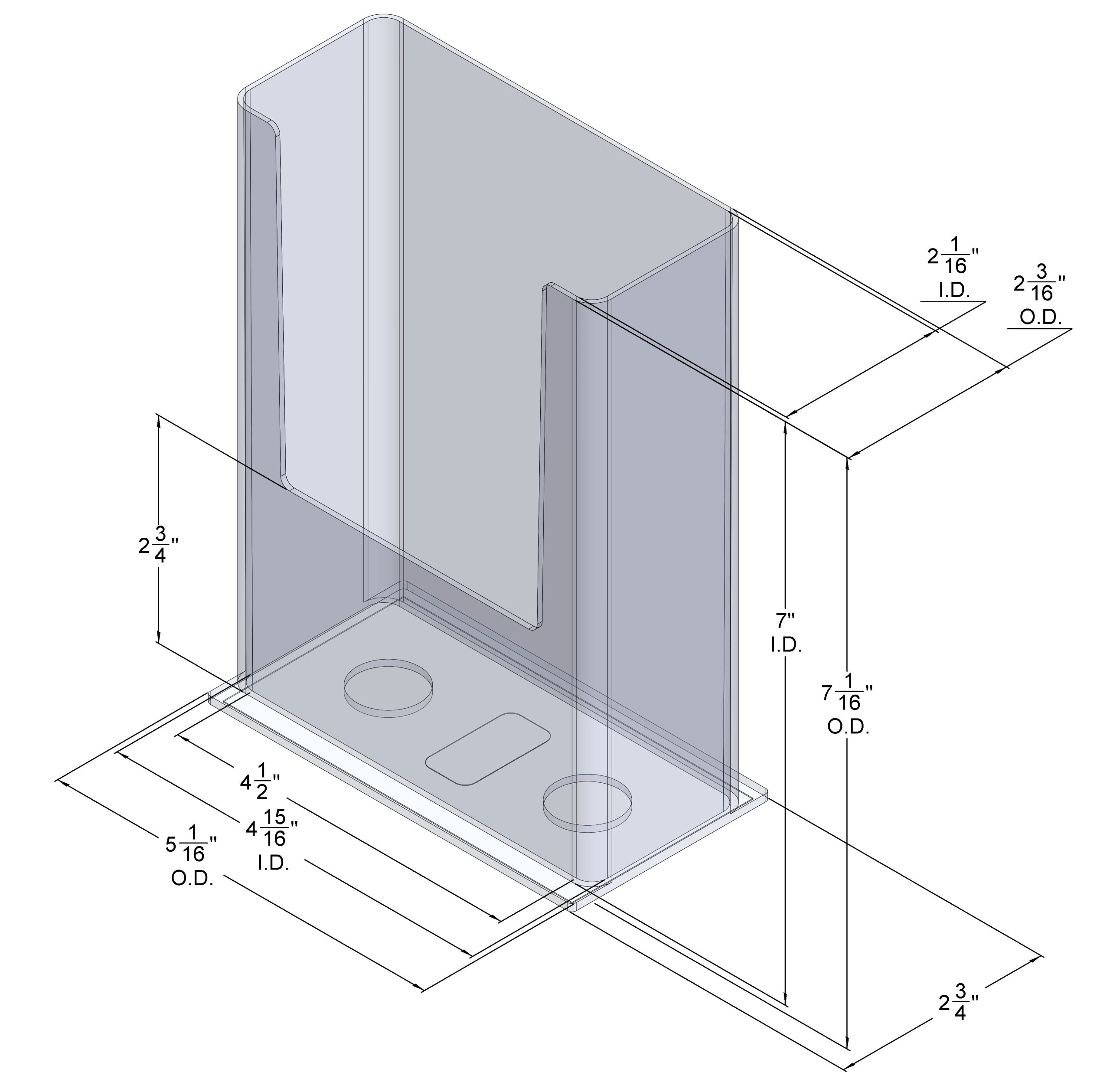 - Overall Dimensions: 5.25” W x 2.25” D x 7” H